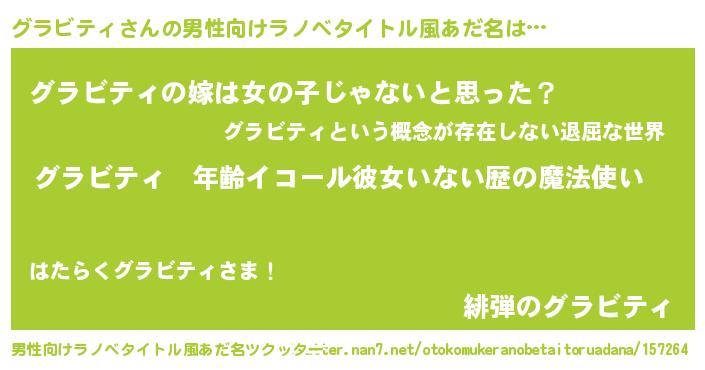 | 女子向けラノベタイトル風あだ名 | 『グラビティの玉の輿計画!』 |