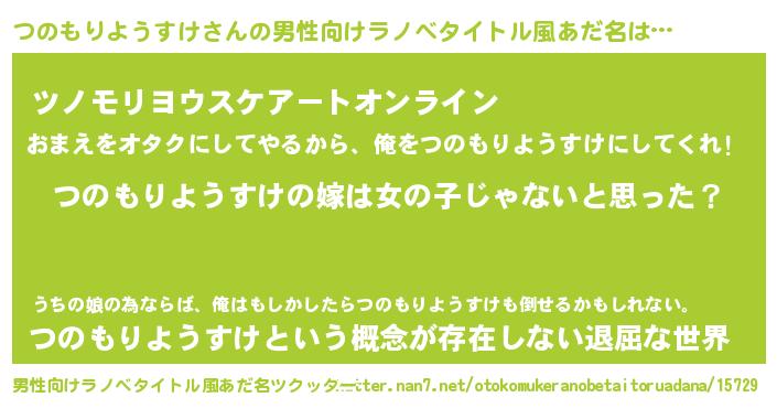 | 女子向けラノベタイトル風あだ名 | 『つのもりようすけ様がみてる』 |