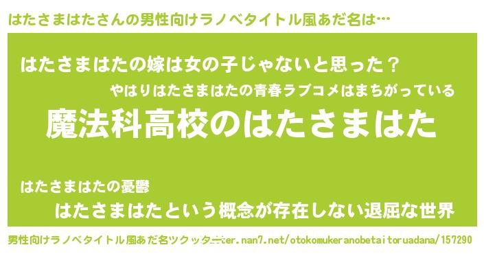 | 女子向けラノベタイトル風あだ名 | 『はたさまはたなんてお断りですっ。』 |