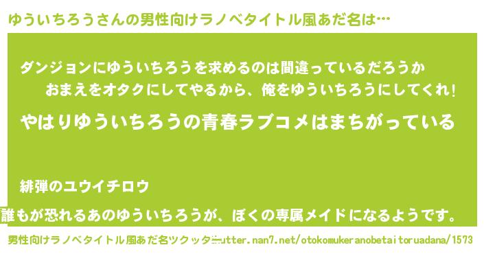 | 女子向けラノベタイトル風あだ名 | 『ゆういちろうの雑貨屋さん』 |