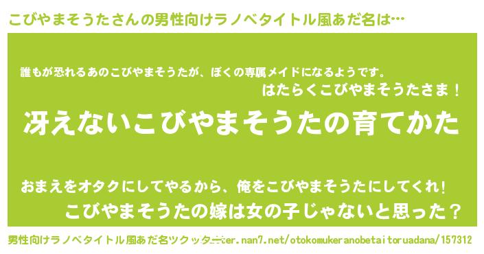| ヘコむあだ名 | 『こびやまそうた(苦笑)』『こび太郎』 |