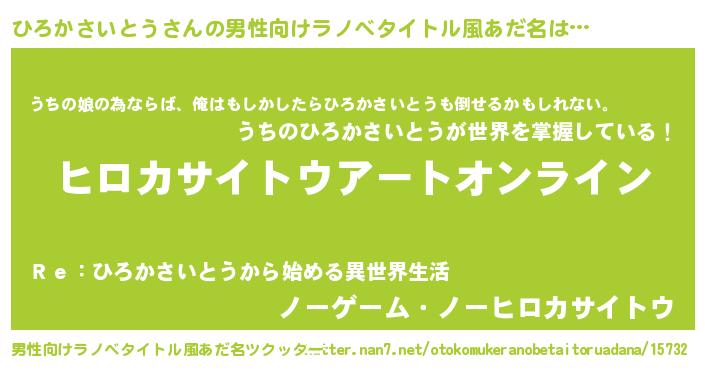 ひろかさいとうさんの男性向けラノベタイトル風あだ名をツクッター!