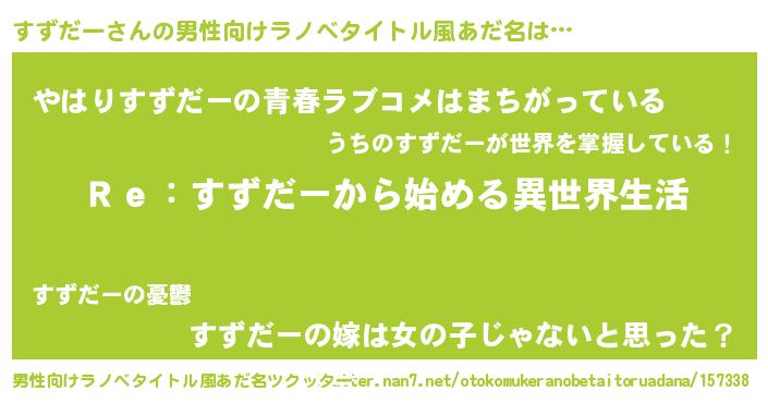 | 女子向けラノベタイトル風あだ名 | 『闇のすずだー』『すずだーの雑貨屋さん』 |