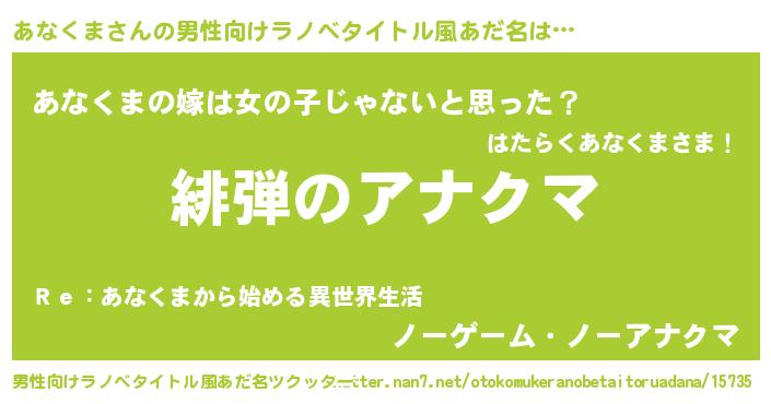 | 女子向けラノベタイトル風あだ名 | 『シンデレラあなくま家の靴箱館』 |