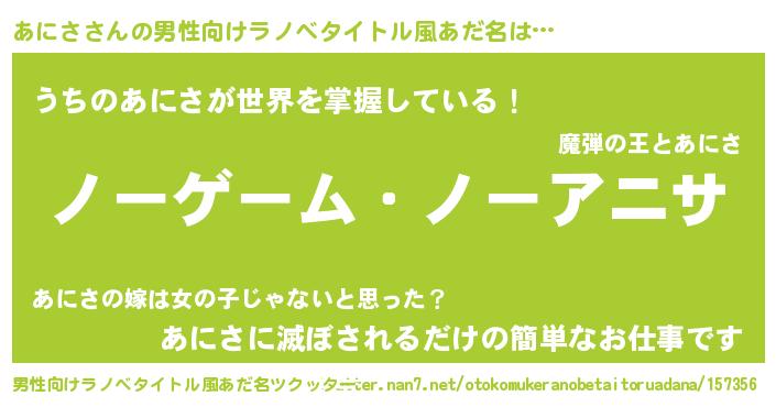 | 女子向けラノベタイトル風あだ名 | 『死神あにさの再婚』『あにさ様がみてる』 |