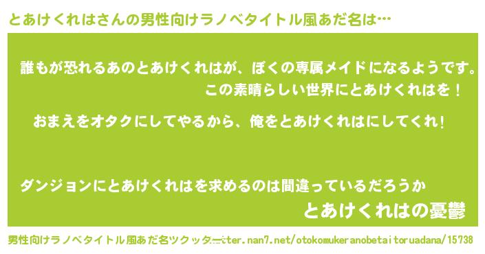 | 胡散臭い通販商品みたいなあだ名 | 『100人中100人が認めた隕石のかけら…その名も「とあけくれは」』 |