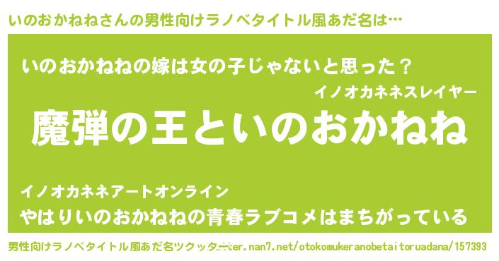 | 意味不明あだ名 | 『住所不定無職いのおかねね(9歳)』 |