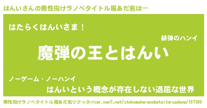 | ヒーロー風カッコイイあだ名 | 『仮面ハンダー』『ネオハンイ』 |