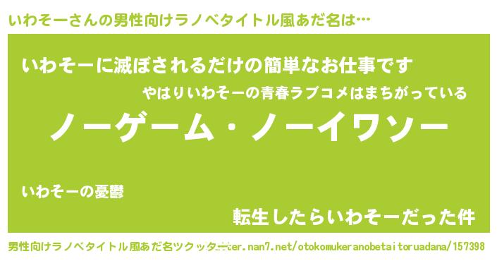 | 女子向けラノベタイトル風あだ名 | 『死神いわそーの再婚』 |