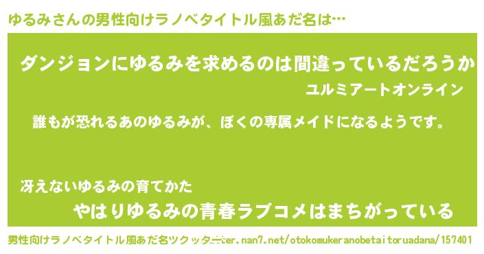 | 女子向けラノベタイトル風あだ名 | 『異世界でカフェゆるみを開店しました。』 |