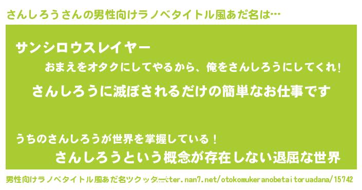 | 意味不明あだ名 | 『もやし科さんしろう属』 |