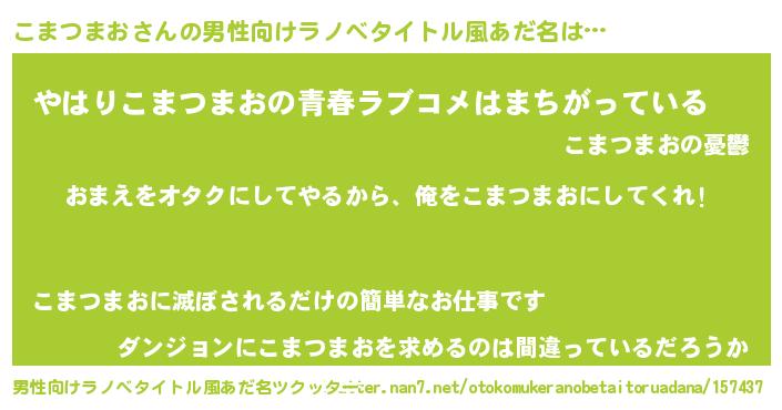| 女子向けラノベタイトル風あだ名 | 『こまつまお夫妻のなれそめ』 |