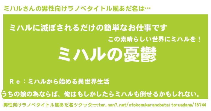 | 女子向けラノベタイトル風あだ名 | 『(仮)ミハルのやんごとなき事情』 |