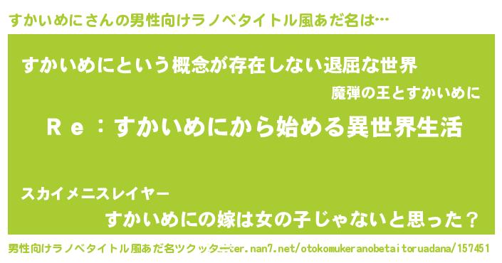 | 女子向けラノベタイトル風あだ名 | 『闇のすかいめに』 |