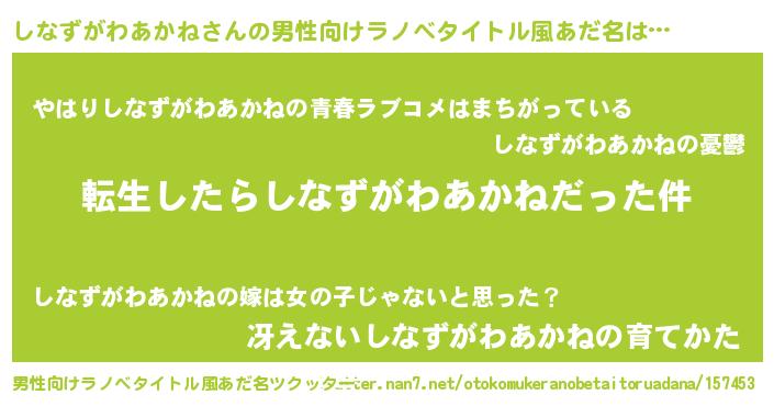 | 胡散臭い通販商品みたいなあだ名 | 『世界が平和になる高級そうな壺…その名も「しなずがわあかね」』 |