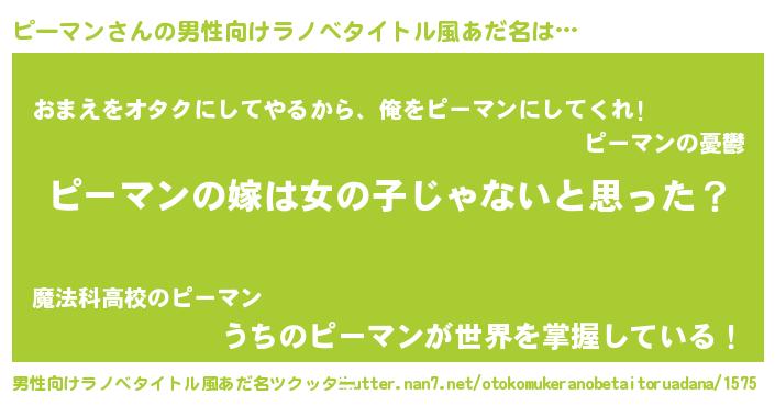 | 女子向けラノベタイトル風あだ名 | 『ピーマン様がみてる』 |
