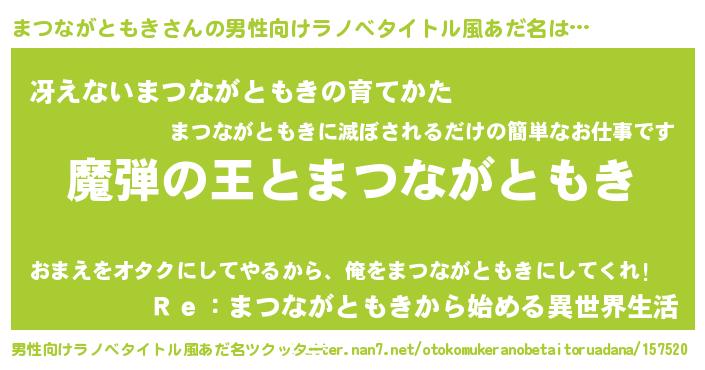 | 女子向けラノベタイトル風あだ名 | 『乙女ゲームの破滅フラグしかない悪役まつながともきに転生してしまった…』 |