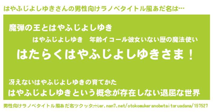 | ヘコむあだ名 | 『はやふじよしゆき(爆)』『はやっ子』 |