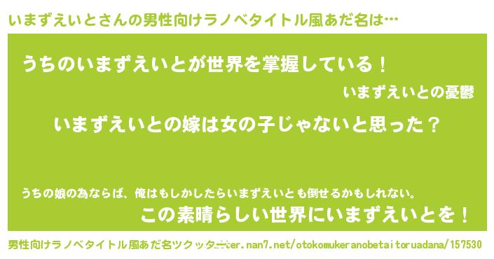| 女子向けラノベタイトル風あだ名 | 『いまずえいとの卵を拾いまして』 |