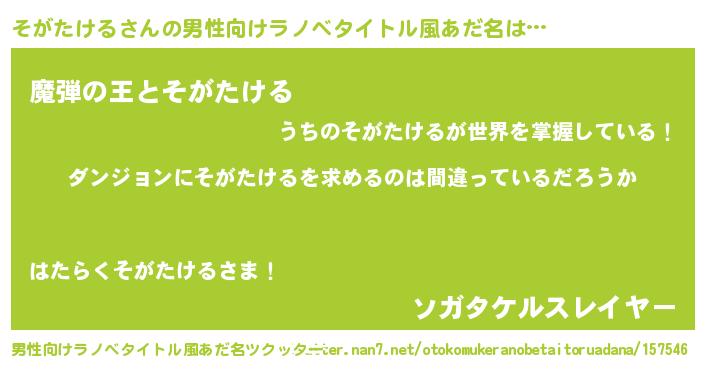 | 胡散臭い通販商品みたいなあだ名 | 『信頼と実績のペンダント…その名も「そがたける」』 |