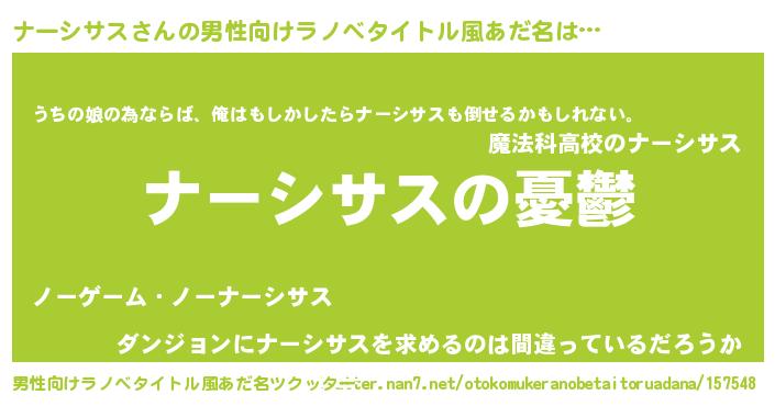 | 女子向けラノベタイトル風あだ名 | 『ナーシサス姫と円卓の騎士』 |