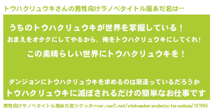 | 意味不明あだ名 | 『住所不定無職トウハクリュウキ(65歳)』 |