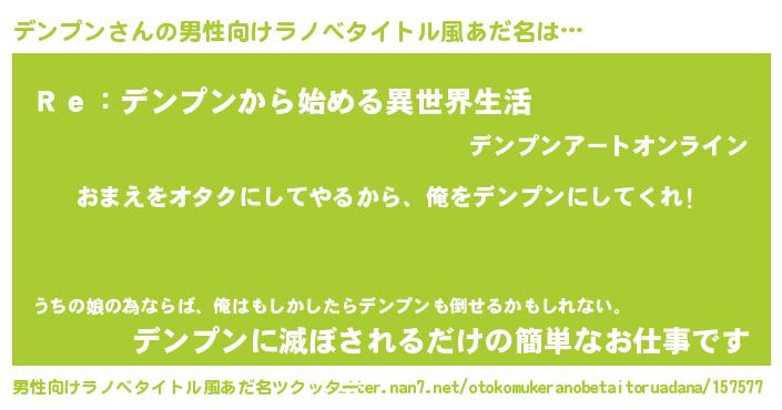 | ヘコむあだ名 | 『デンふぇ~』『牛乳』『デンぷりん』 |