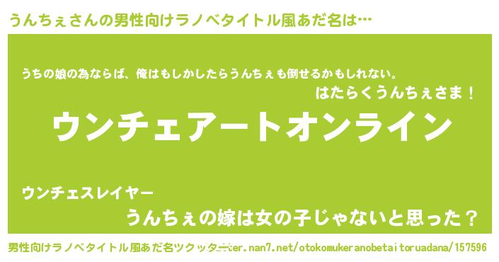 | 女子向けラノベタイトル風あだ名 | 『誰かこのうんちぇを説明してください! ~契約から始まるウェディング~』 |