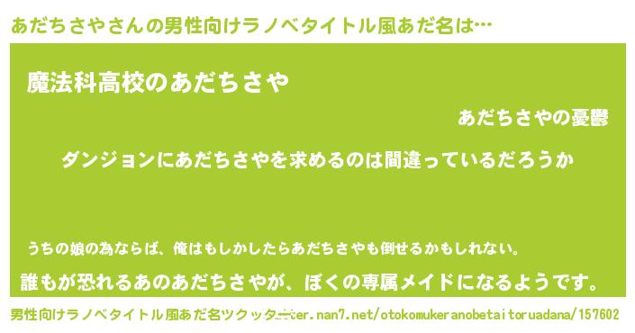 | 女子向けラノベタイトル風あだ名 | 『あだちさやの卵を拾いまして』 |