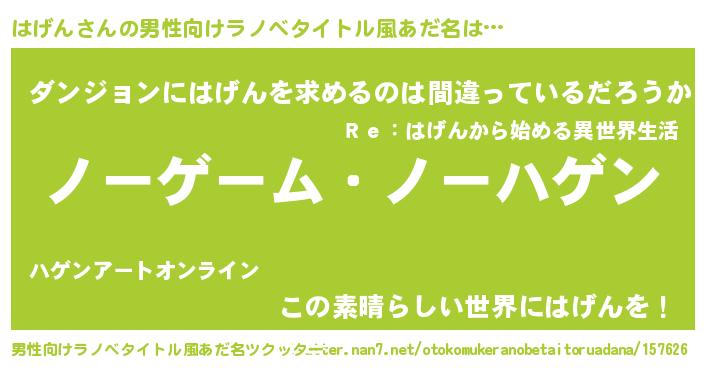 | ヒーロー風カッコイイあだ名 | 『天空の使者はげん』『暗黒騎士ハゲ』 |