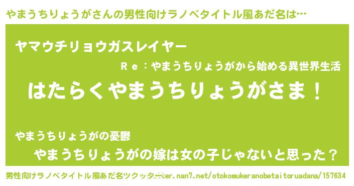 | 胡散臭い通販商品みたいなあだ名 | 『信頼と実績のサプリメント…その名も「やまうちりょうが」』 |