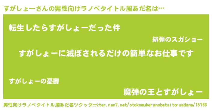 | 胡散臭い通販商品みたいなあだ名 | 『あなたにだけ特別に提供する100年もののヴィンテージワイン…その名も「すがしょー」』 |