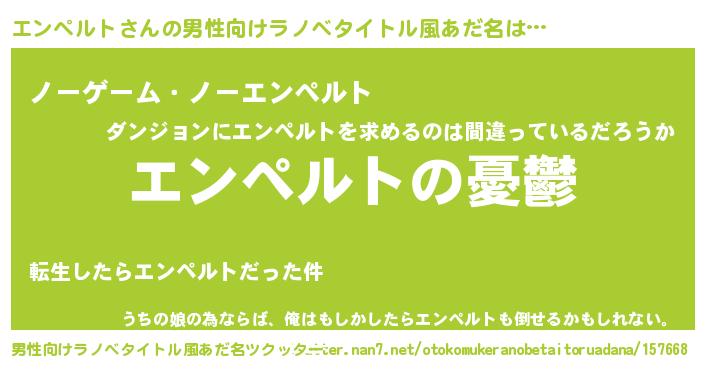 | 胡散臭い通販商品みたいなあだ名 | 『モテモテ間違いなし霊験あらたかなお札…その名も「エンペルト」』 |