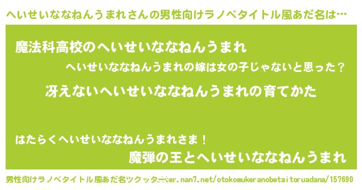 | 女子向けラノベタイトル風あだ名 | 『シンデレラへいせいななねんうまれ家の靴箱館』 |