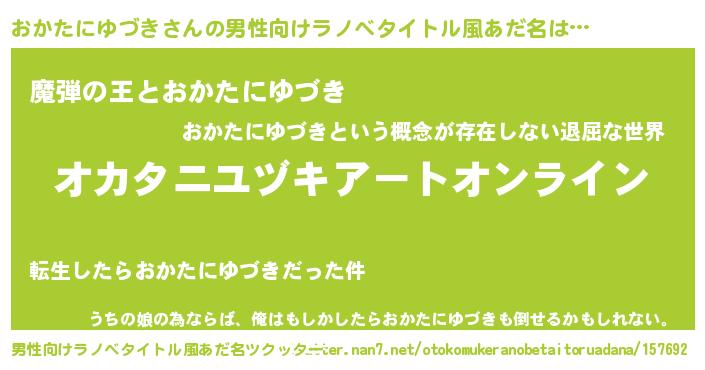 | 女子向けラノベタイトル風あだ名 | 『おかたにゆづき姫と円卓の騎士』 |