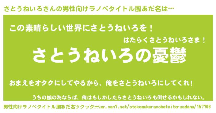 | 胡散臭い通販商品みたいなあだ名 | 『必ず成功する霊験あらたかなお札…その名も「さとうねいろ」』 |