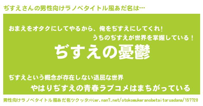 | 胡散臭い通販商品みたいなあだ名 | 『必ず成功する霊験あらたかなお札…その名も「ぢすえ」』 |