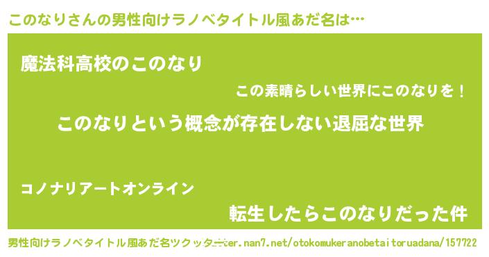 | 胡散臭い通販商品みたいなあだ名 | 『来世でも幸せになれる健康食品…その名も「このなり」』 |