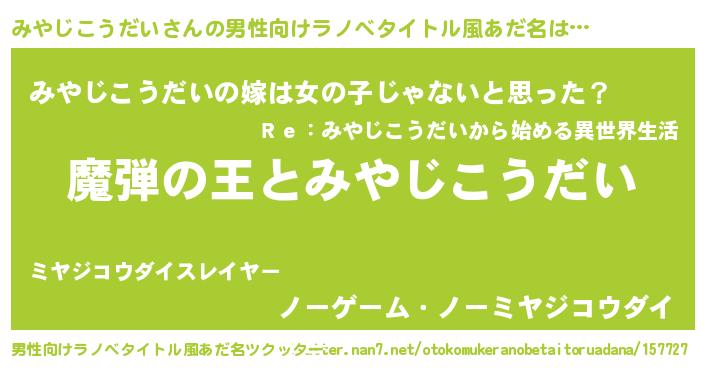 | 女子向けラノベタイトル風あだ名 | 『みやじこうだいが死なない童話 林檎のみやじこうだいの診療簿』 |
