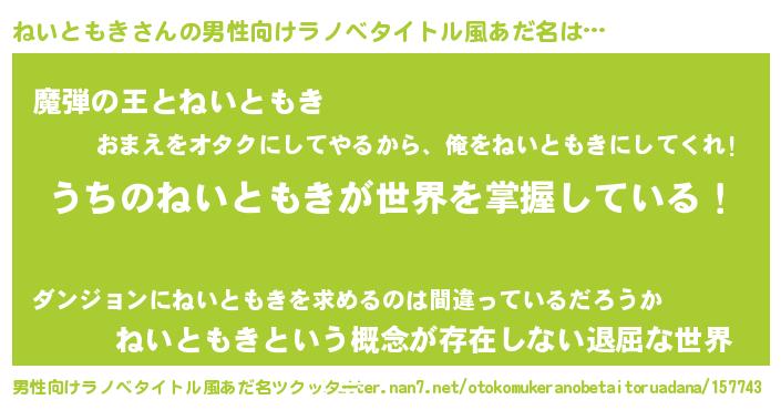| 意味不明あだ名 | 『住所不定無職ねいともき(12歳)』 |