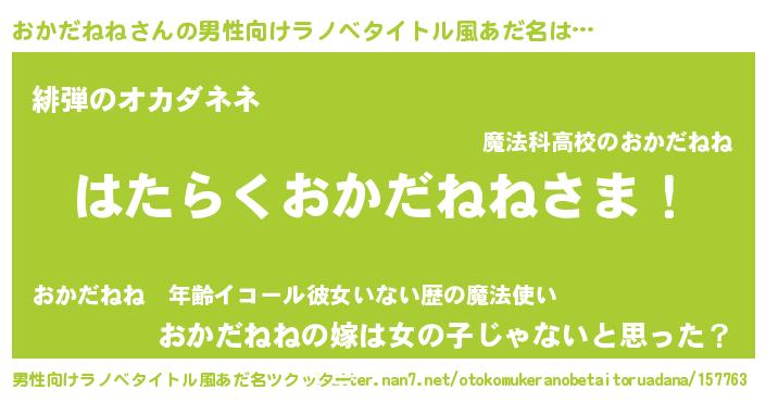 | 欧米人風あだ名 | 『アンジェラ・おかだねね』 |