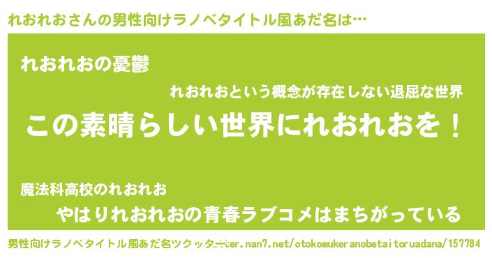 | 意味不明あだ名 | 『住所不定無職れおれお(74歳)』 |