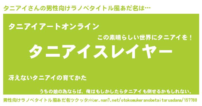 | 意味不明あだ名 | 『しいたけ科タニアイ属』『自称タニアイ』 |
