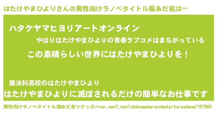 | 意味不明あだ名 | 『住所不定無職はたけやまひより(13歳)』 |