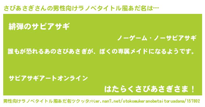 | 女子向けラノベタイトル風あだ名 | 『さびあさぎの契約王妃』 |