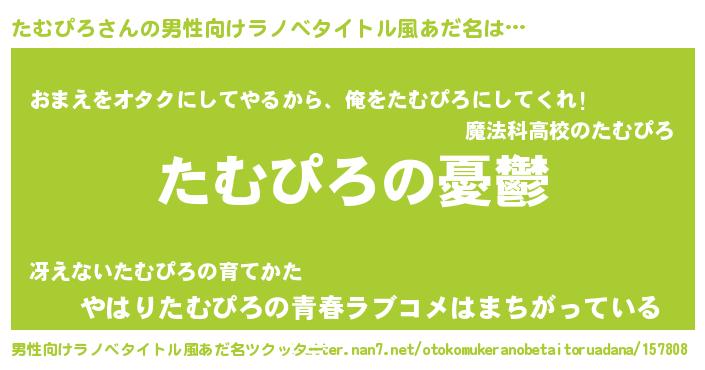 | 女子向けラノベタイトル風あだ名 | 『(仮)たむぴろのやんごとなき事情』 |