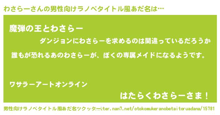 | ヘコむあだ名 | 『わさらー(苦笑)』『わさ太郎』 |