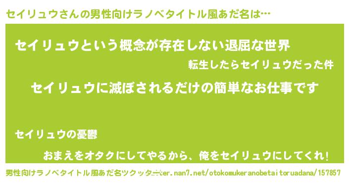 | ヘコむあだ名 | 『セイリュウ(笑)』『セイっふぃ~』 |
