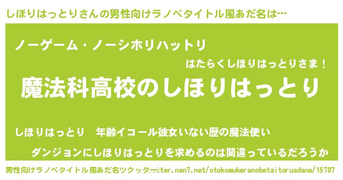 | 女子向けラノベタイトル風あだ名 | 『しほりはっとりなんてお断りですっ。』 |