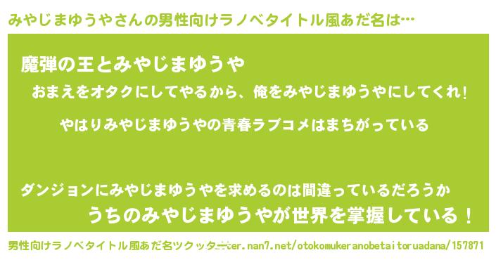 | 女子向けラノベタイトル風あだ名 | 『みやじまゆうやの雑貨屋さん』 |